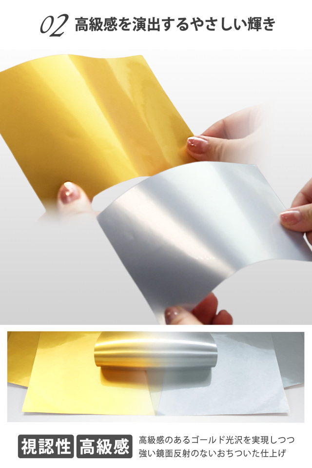 | 紙厚 | ゴールド:総厚み 0.26mm /ラベル(PET)厚み0.1mm シルバー:総厚み0.22mm / ラベル(PET) 厚み:0.1mm |