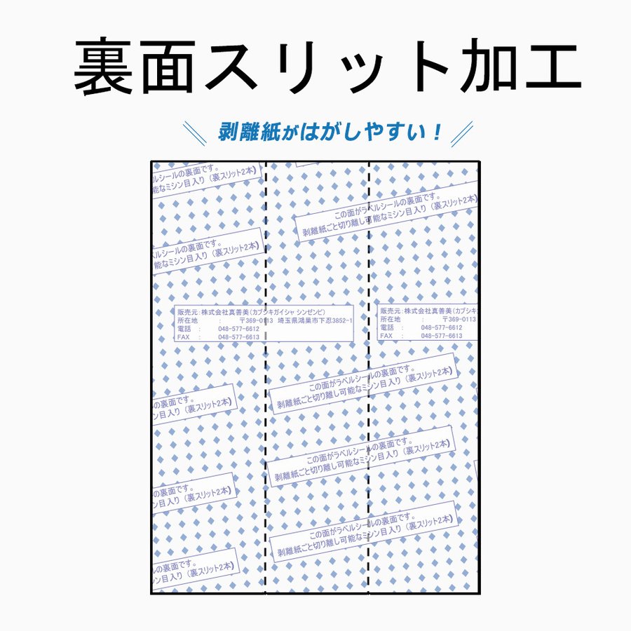 裏面にはスリット加工がされているため、剥離紙が剥がしやすくなっています。