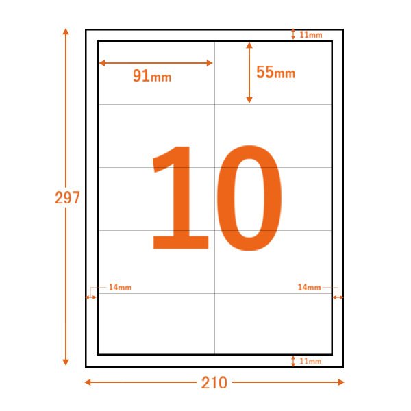 | サイズ | A4(210mm×297mm)/10面 91×55mm 名刺サイズ |