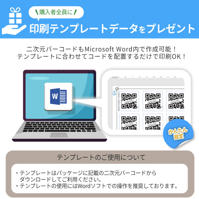 二次元バーコード(QRコード)ラベルを簡単に素早く作成したい方向けのラベルシールです。